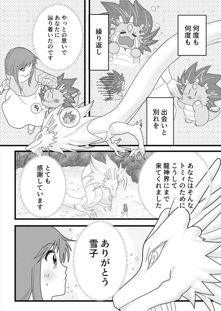 ドラゴンナーチャリング第9話 2025 10/20 オリジナル漫画 ドラゴンナーチャリング 2025-10-20 10話へ続きます! 次回トミィ龍のパパ(龍王神)の登場します! お楽しみに♪ 感想や作品に対する質問など大歓迎です♪ オリジナル漫画 ドラゴンナーチャリング よかったらシェアしてね! URLをコピーしました! URLをコピーしました! この記事を書いた人 なそら オリジナルの世界を考えることが大好き人間です♪ 頭にある世界をすべて漫画化するため、 色鉛筆とデジタルで龍と相棒キャラを中心とした絵や漫画を発信しています。 見てくれた人の心にほっこり灯をともす「龍漫画ドラゴンナーチャリング」などの漫画作品2000pを目標に描き上げ中。 関連記事 ドラゴンナーチャリング第8話 2025-09-12 ドラゴンナーチャリング第7話 2025-06-21 ドラゴンナーチャリング第6話 2025-02-27 ドラゴンナーチャリング第5話 2024-12-29 ドラゴンナーチャリング第4話 2024-09-16 ドラゴンナーチャリング第3話 2024-09-16 ドラゴンナーチャリング第2話 2024-09-16 ドラゴンナーチャリング第1話 2024-09-16 コメント コメントする コメントをキャンセルコメント ※ 名前 ※ メール ※ サイト 次回のコメントで使用するためブラウザーに自分の名前、メールアドレス、サイトを保存する。